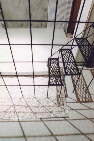 階段は直径1pの鉄筋をトラス状に組む事で自立させています。